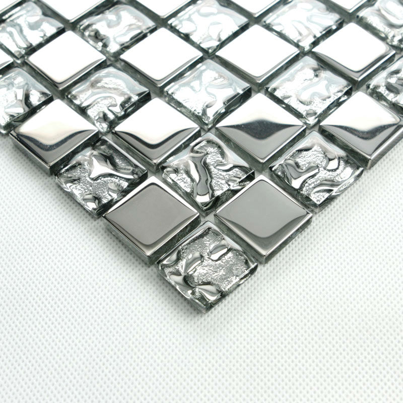 Verre argent tuile dosseret idées salle de bains mosaïque carreaux plating pas cher artisan carré mur autocollants douche carrelage PGT8123